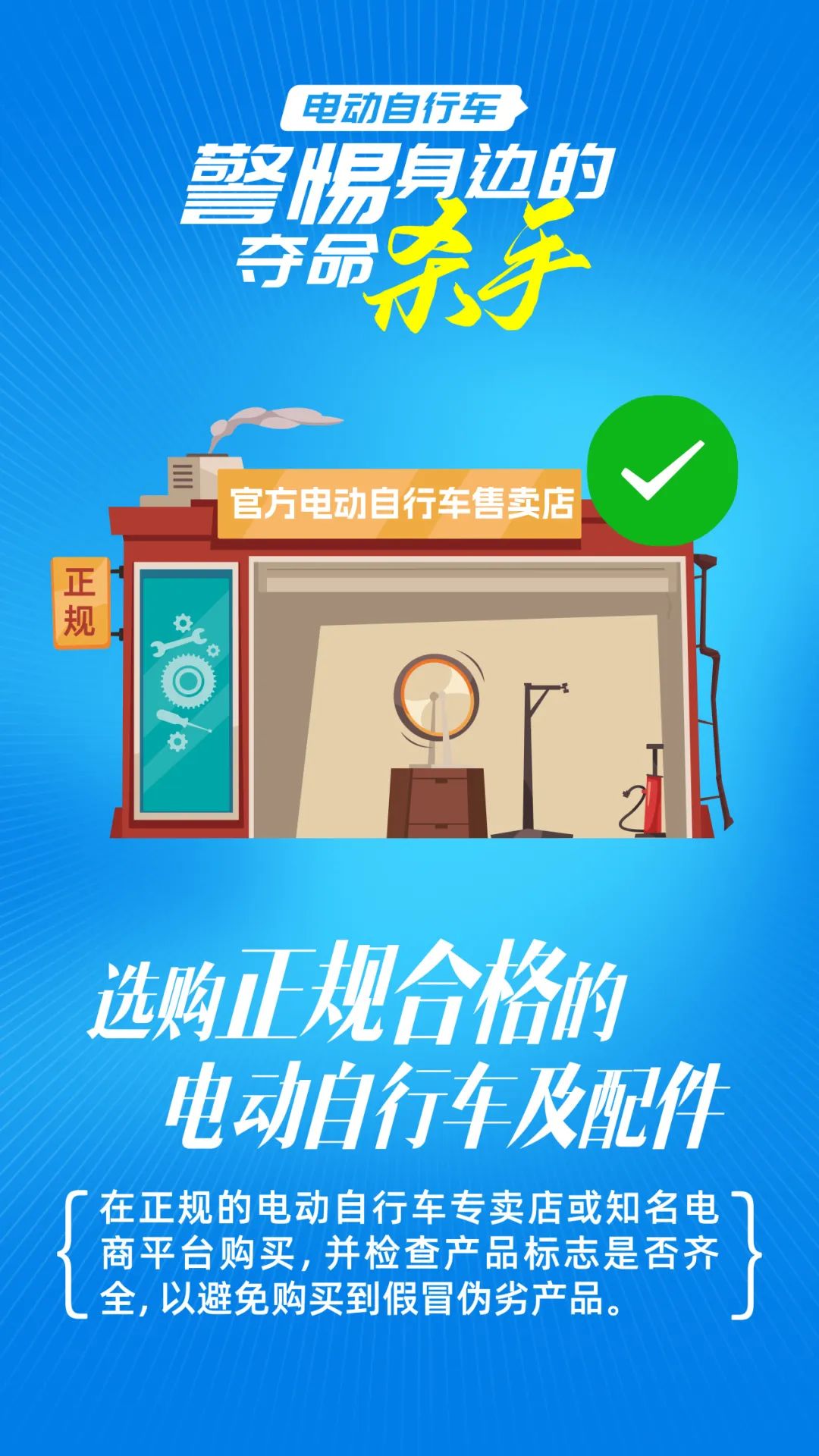 1.严禁购买不合格电动车及配件。 不合格、非标或超标的电动车、电池、电线、充电器,会增加火灾风险。